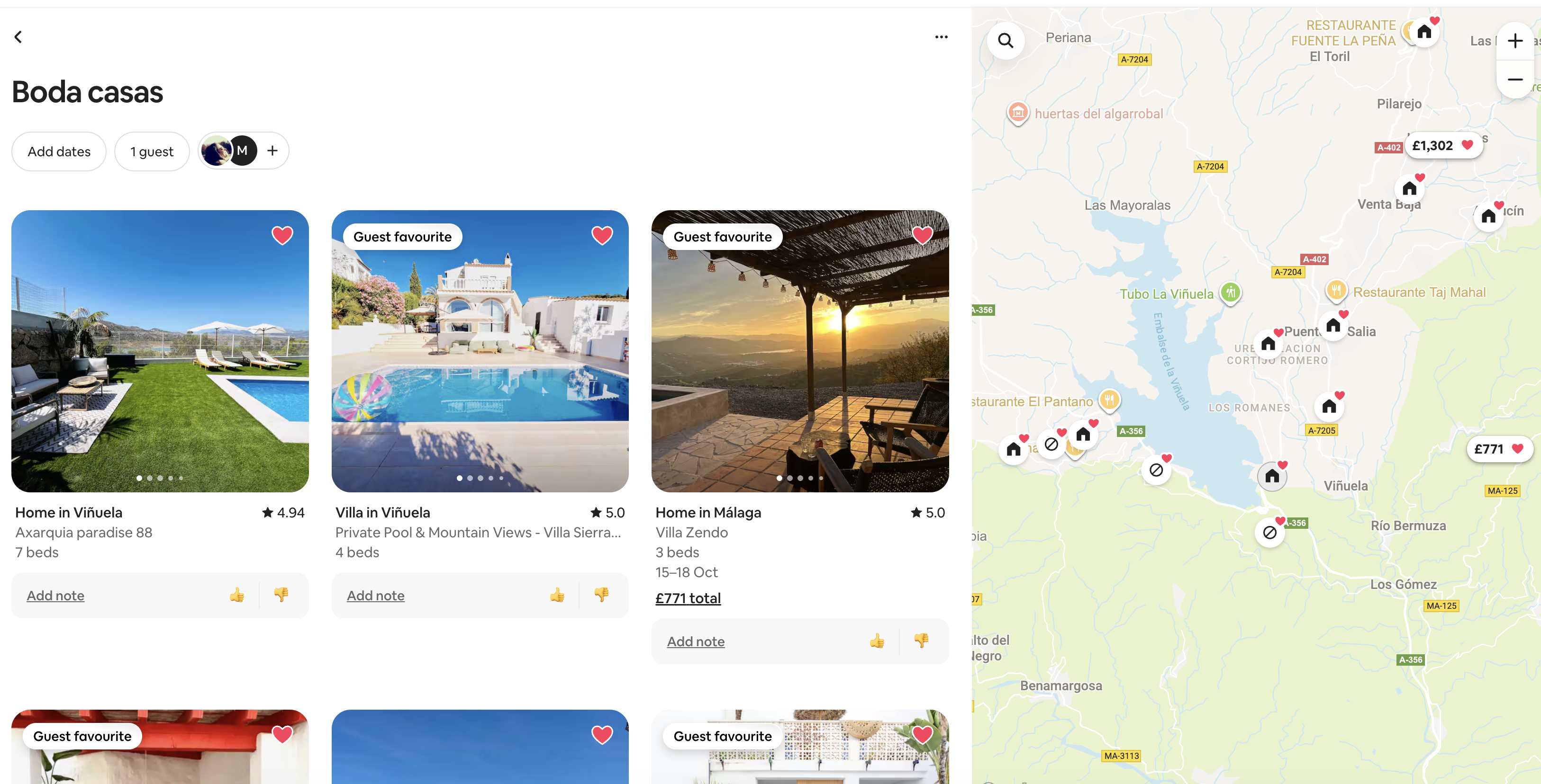 Airbnb list – La Viñuela area
